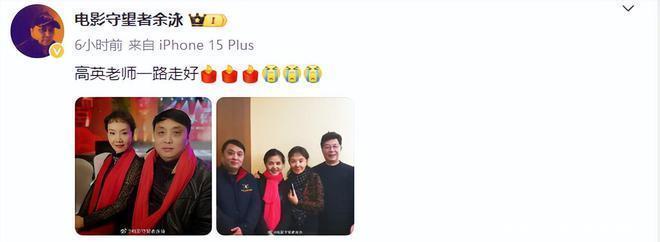 电影人余泳在得知高英老师离世后,还专门在社交平台上发文悼念。