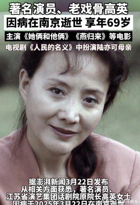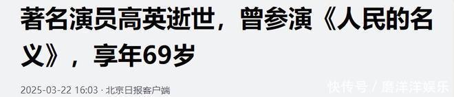 参考信息:北京日报客户端2025.3.22——《著名演员高英逝世,曾参演《人民的名义》,享年69岁》